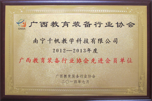 南寧千帆榮獲“2012-2013年度廣西教育裝備行業(yè)協(xié)會先進會員單位”