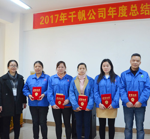 隨后,對2017年度涌現出的生產標兵、優秀員工和優秀管理干部依次進行表彰,優秀管理干部蔣小輝經理代表先進個人發表獲獎感言。