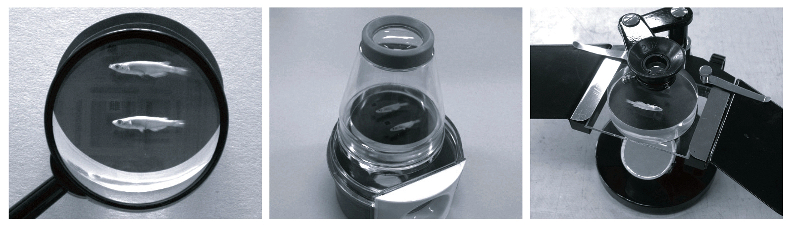 雌雄青鳉魚對比 顯微觀察標本