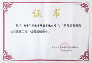 “教育裝備海南援建工程”優秀捐贈企業 |